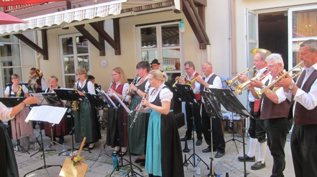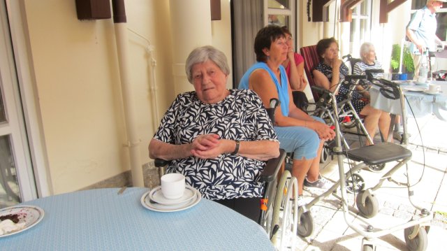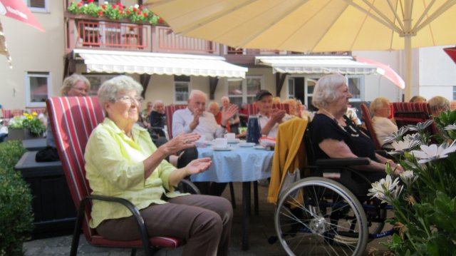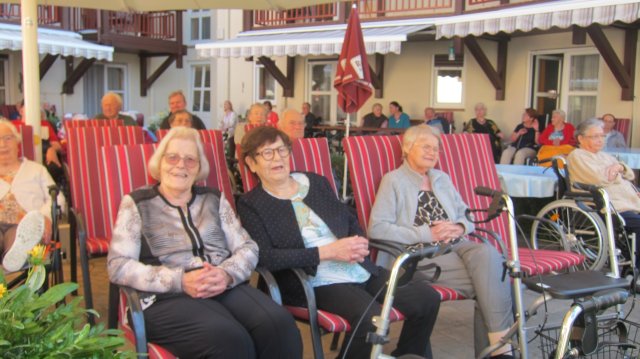 Bei wahrlich heißen Temperaturen spielte die Blaskapelle Reyersbach flotte Musik für unsere Bewohner. Blasmusik hat eine lange Tradition und so ist es nicht verwunderlich, dass diese volkstümliche Musik sehr beliebt ist.